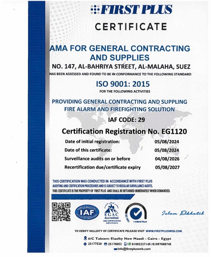 تم انشاء شركة اما للمقاولات العمومية و شركة التوريدات عام 2017 كمنشئة فردية لمؤسسها المهندس / عمرو محمد محمود احمد ، ازدهرت الشركة بعد ذلك و أستطاعت ان تحتل مركزاً مهم في مجال توريد و تركيب معدات الاطفاء و الانذار من حيث الشغل الفعلي مثل : توريد و تركيب المعدات ومن حيث انجاز التراخيص الورقية مثل تقارير التراخيص الاستشاري و شهادات الضمان و الصلاحية .