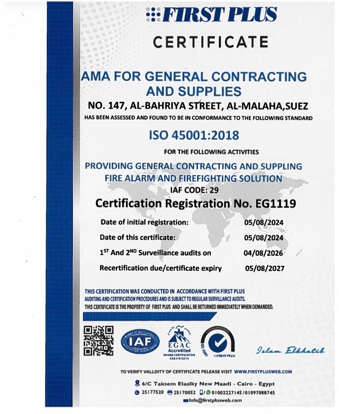 تم انشاء شركة اما للمقاولات العمومية و شركة التوريدات عام 2017 كمنشئة فردية لمؤسسها المهندس / عمرو محمد محمود احمد ، ازدهرت الشركة بعد ذلك و أستطاعت ان تحتل مركزاً مهم في مجال توريد و تركيب معدات الاطفاء و الانذار من حيث الشغل الفعلي مثل : توريد و تركيب المعدات ومن حيث انجاز التراخيص الورقية مثل تقارير التراخيص الاستشاري و شهادات الضمان و الصلاحية .
